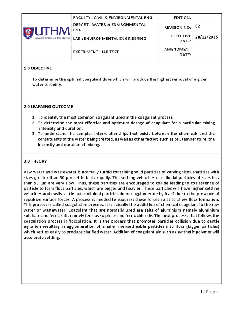 Related : Jar Test Lab Report - Jar testing laboratory experiment group 5 performed by:.